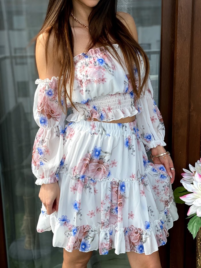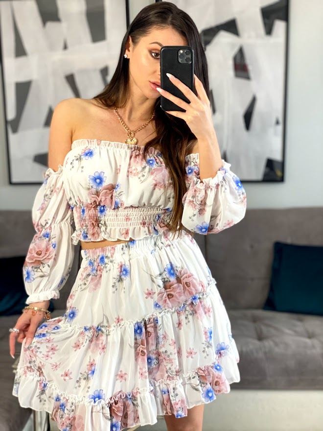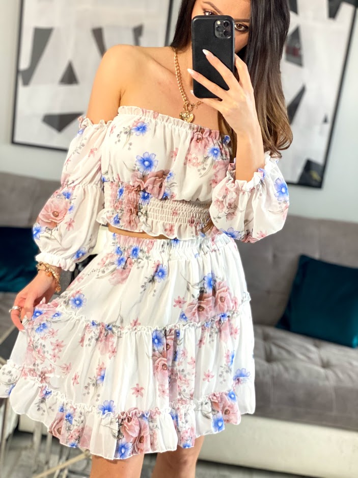 Modny komplet damski Chica  w stylu glamour wyjątkowa stylizacja na wiosnę – lato 2021. Idealnie sprawdzi się na spacer, randkę, czy imprezę.