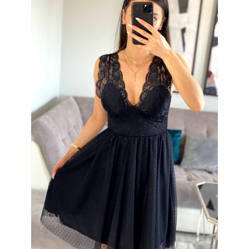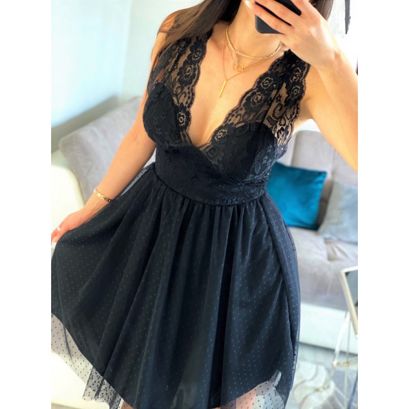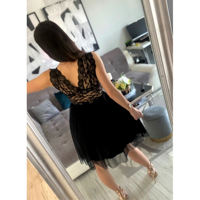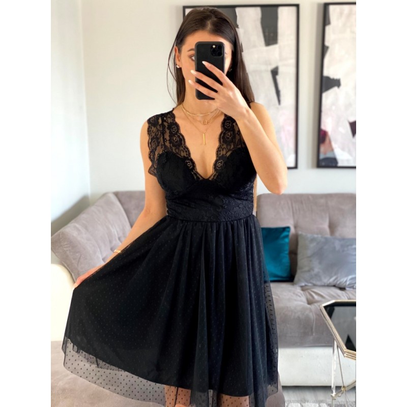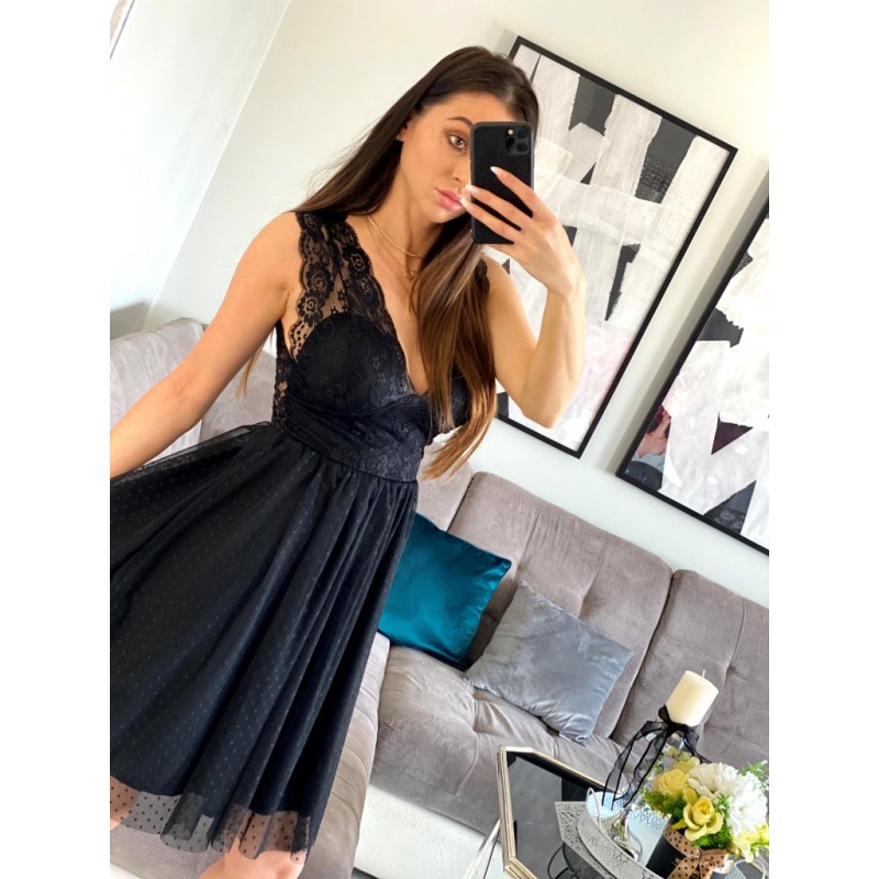 Stylowe i eleganckie sukienki koronkowe pięknie podkreślą kobiecość, dodadzą atrakcyjności i pewności siebie. Zwracają uwagę, przyciągają spojrzenia i sprawiają, że zostaniesz królową wieczoru czy przyjęcia. Koronkowe sukienki to propozycja dla odważnych pań, które nie boją się modowych eksperymentów. O dostępność modelu na zdjęciu prosimy pytać w ? ? ? ? ? Marsala czarna sukienka koronkowa z tiulem długości midi oraz głębokim dekoltem – butik online smlfashion.pl